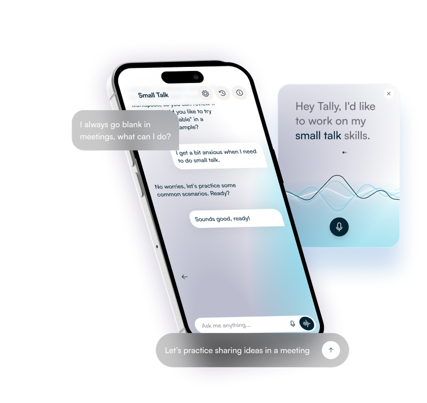You can practice real work situations: meetings, presentations, interviews, stakeholder updates, small talk, tough conversations, and more. Tally gives instant feedback on clarity, tone, conciseness, and cultural signals, so you show up prepared. You can also ask Tally to explain concepts or words, switch to your language, or ask it to create practice exercises for you.