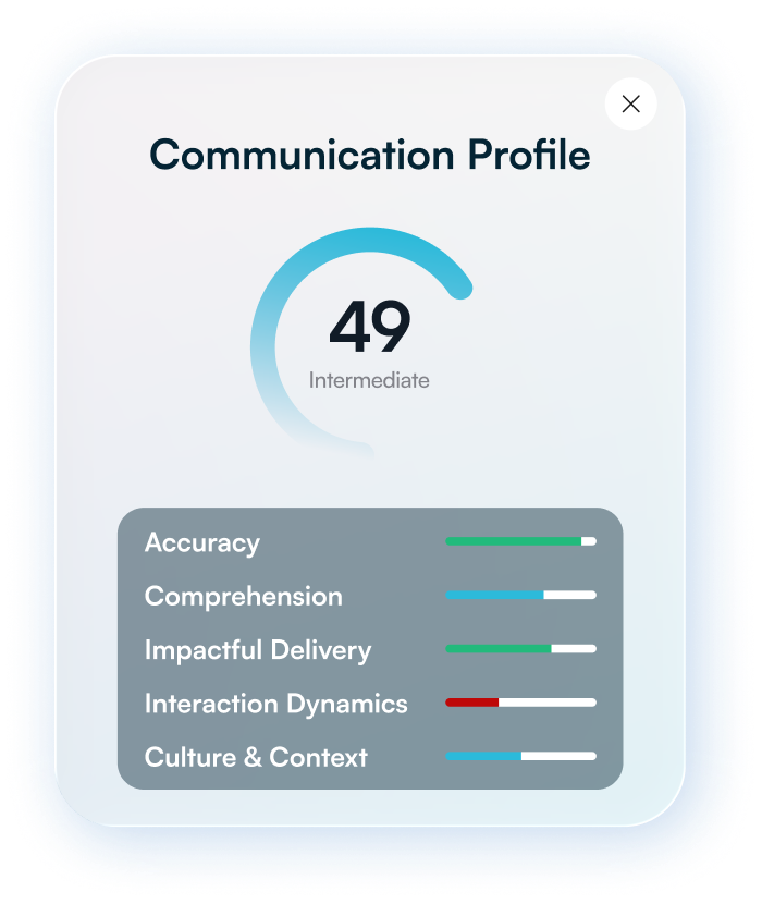 Diagnose communication gaps, build the right skills, and track progress with a platform designed for teams who work in English every day.