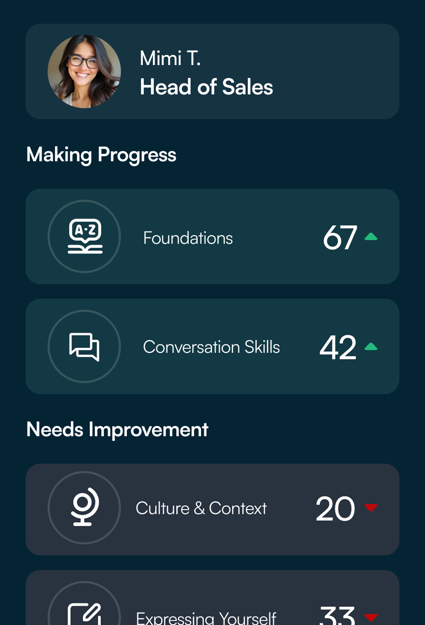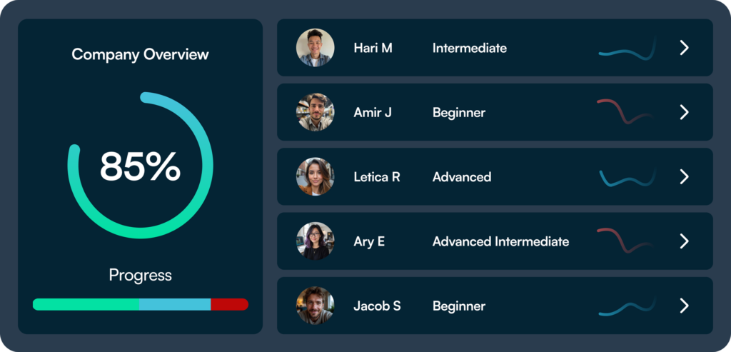 We built this English Proficiency Assessment to give People leaders a clear, objective view of how well employees can operate in English at work so you can target development and make confident decisions at scale.