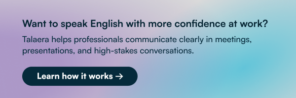 Want to communicate with more confidence in all your professional interactions? Talaera helps professionals speak clearly in meetings, presentations, and high-stakes conversations.
